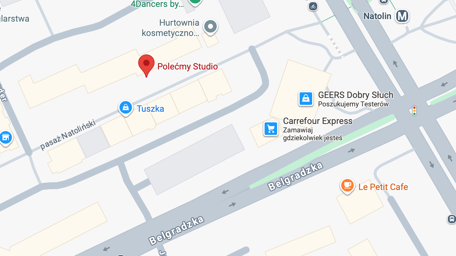 tuż obok metra Natolin, dla zmotoryzowanych dużo bezpłatnych miejsc w okolicy